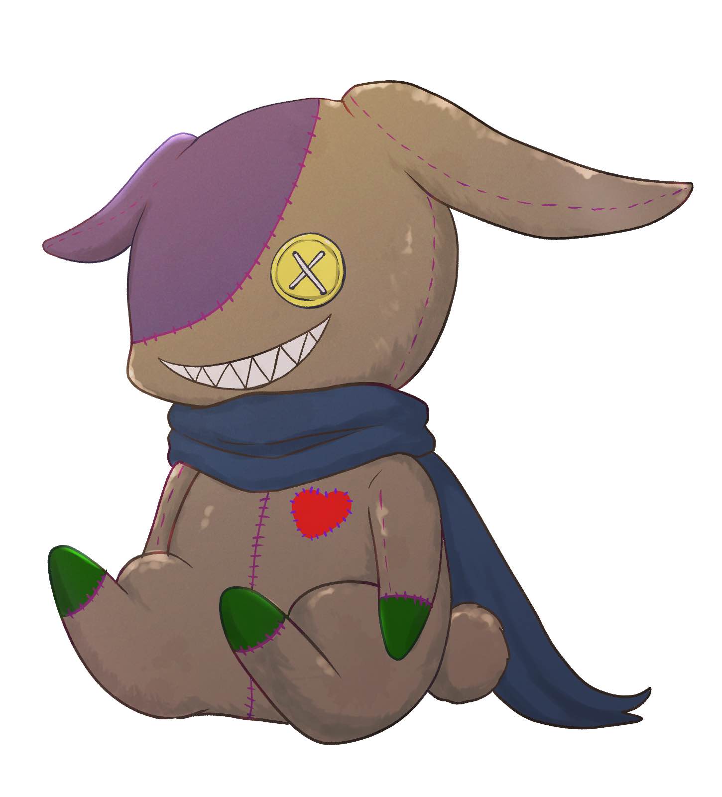 二色のつぎはぎの体にスカーフを巻いている…たれ耳のうさぎだ。