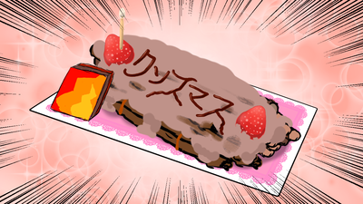 「赤」要素として苺をのっけて…… あとは……蝋燭? あ、わかった!!! 枝ごとバリバリいけるアザミに当たるとは限らないし、枝が残っちゃっても燃やして焚火として使えるよう、マッチ棒をイチゴに刺しとこ!え、天才かな~?
